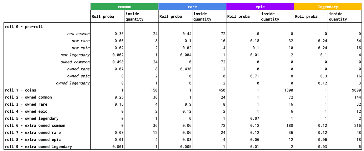 Hence we are morally and legally obliged to disclose the probabilities to draw every type of cards when you open a bag to make sure you are playing in a safe and joyful environment.